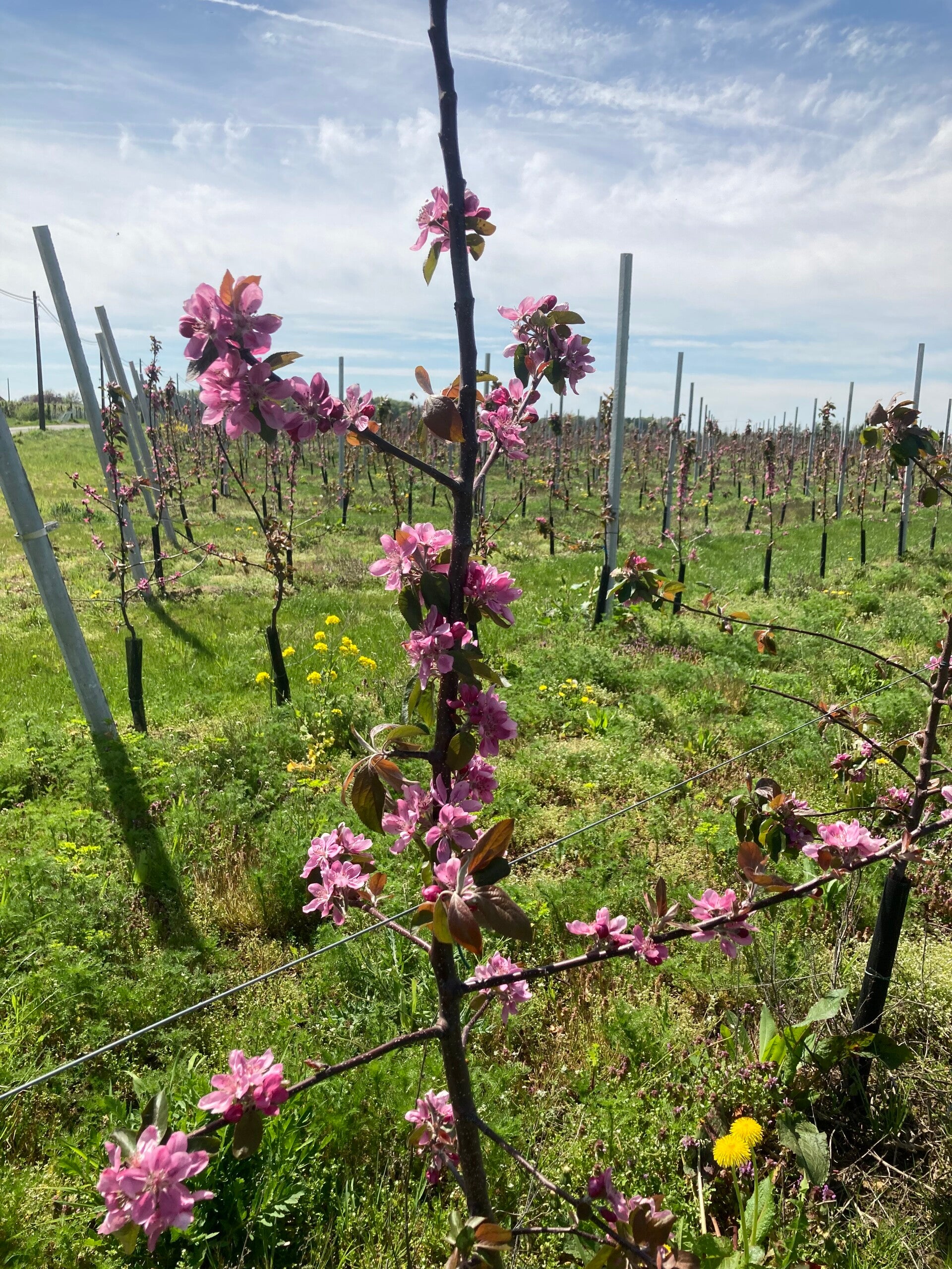 Soms kom je dan ook weer interessante dingen tegen zoals wijngaarden en roze bloeiende/roodbladige appel rassen.